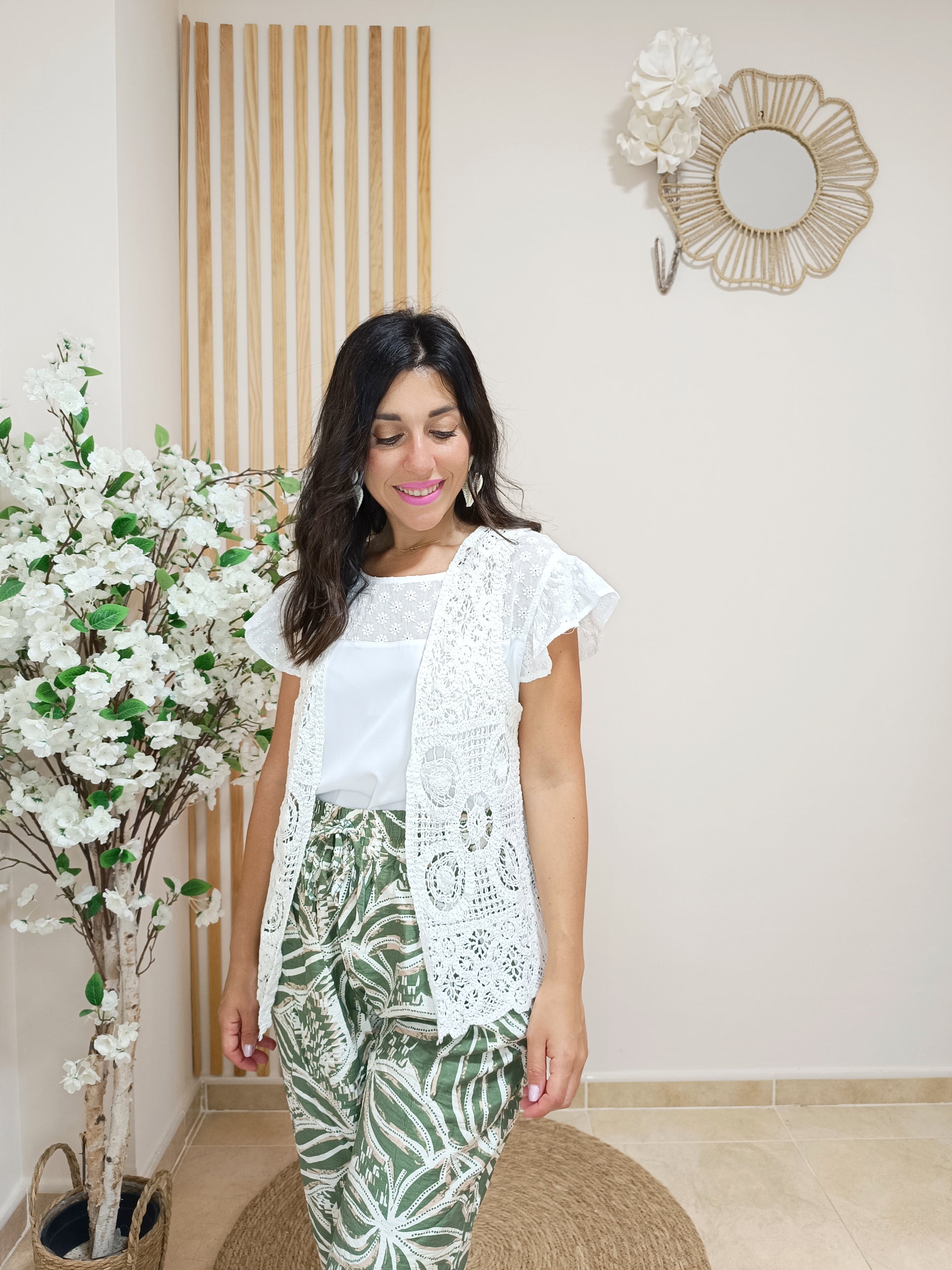 Complemento estrella de cada verano, el chaleco crochet es una prenda indiscutible con la que deberás hacerte para estos meses. Te enseñamos el chaleco Mallorca, en algodón 100% y disponible en dos colores neutros que te ayudarán a combinar con todas tus prendas: beige o blanco.