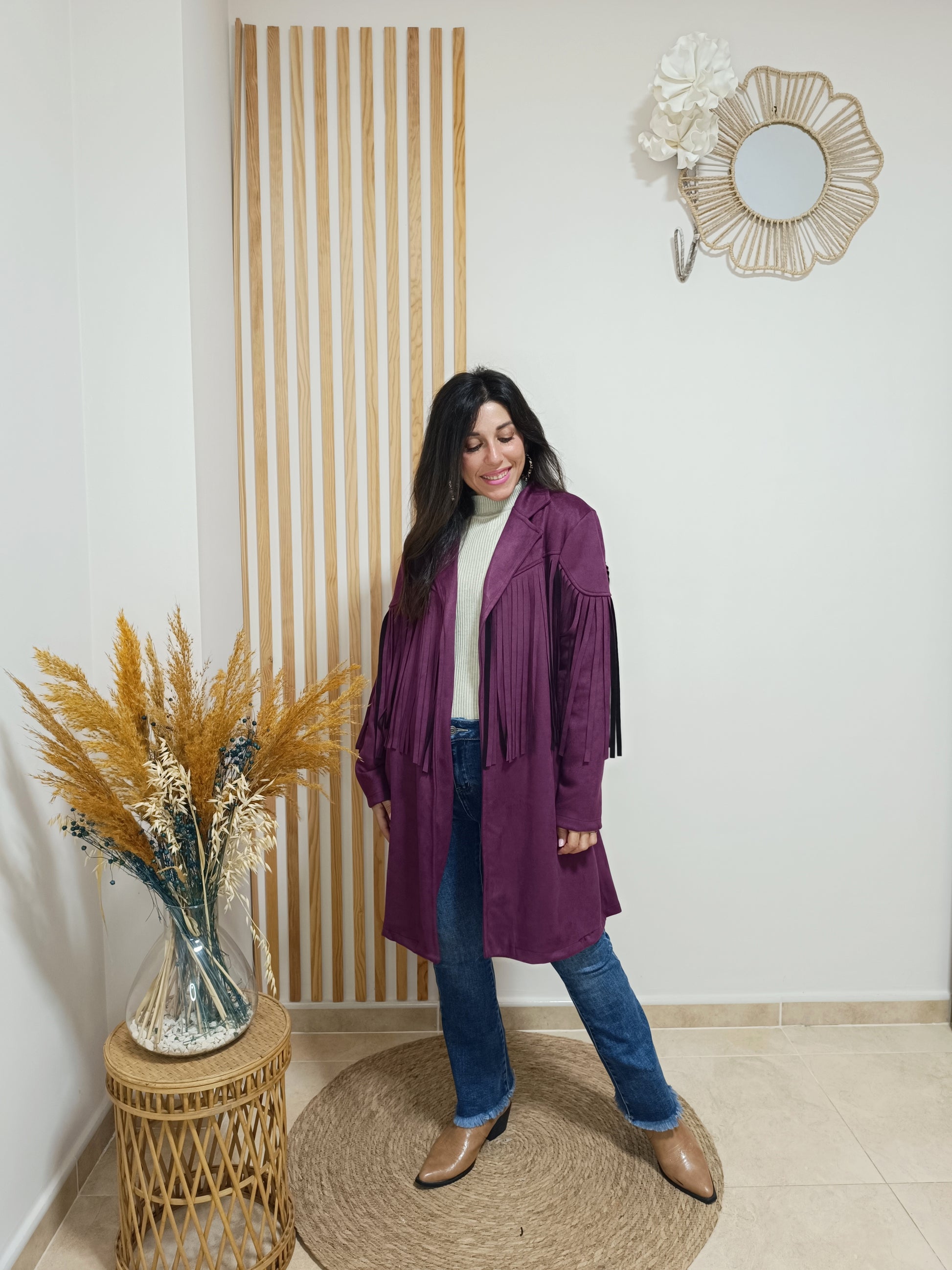 Es la chaqueta más viral de la temporada. Tiene todos los ingredientes necesarios para convertirse en esa prenda estrella de tu armario con la que resolver cualquier look con acierto. En antelina, largo 3/4 y con un color berenjena de lo más favorecedor, nuestra chaqueta Arizona viene dispuesta a ser el centro de todas las miradas.