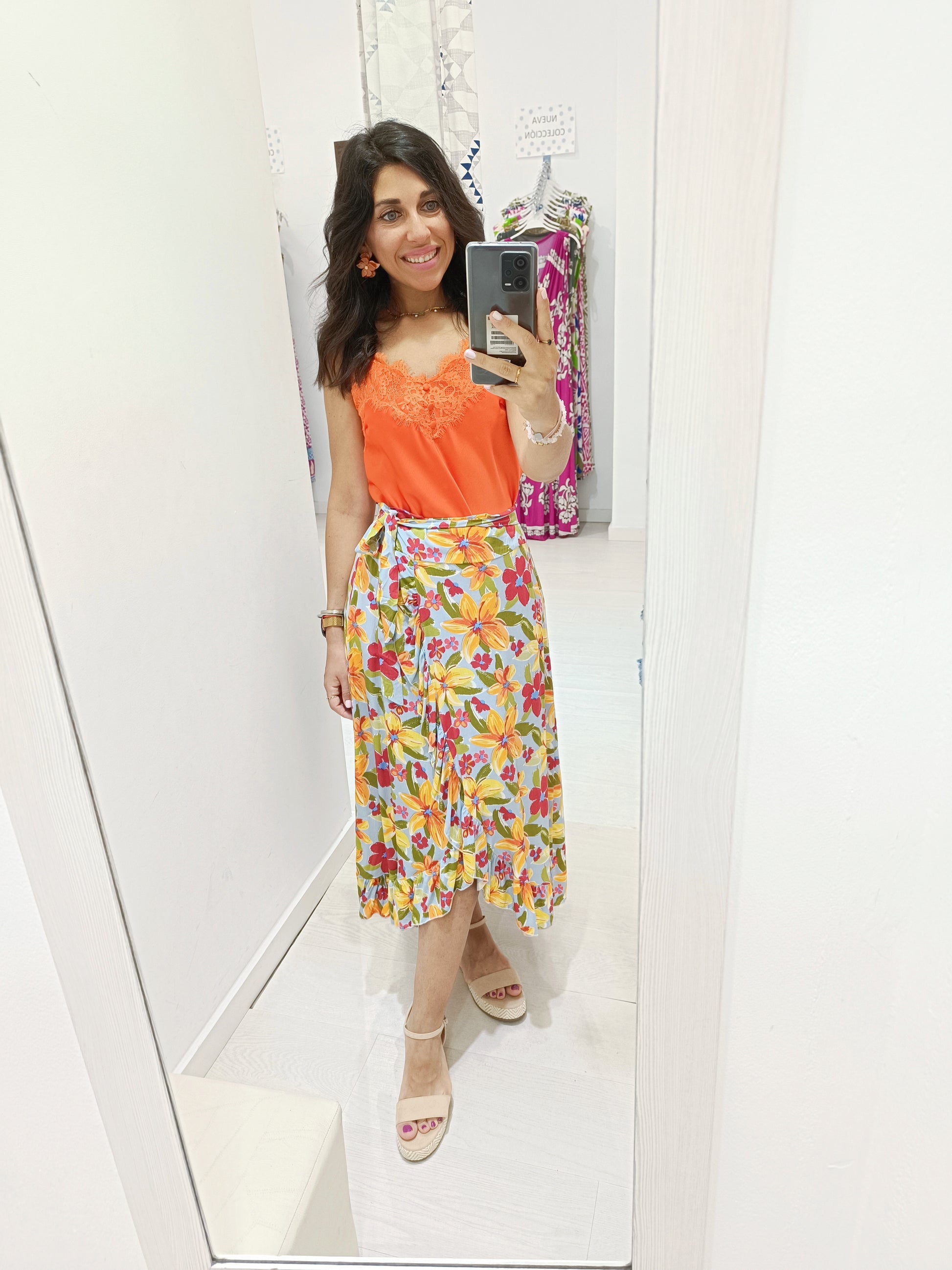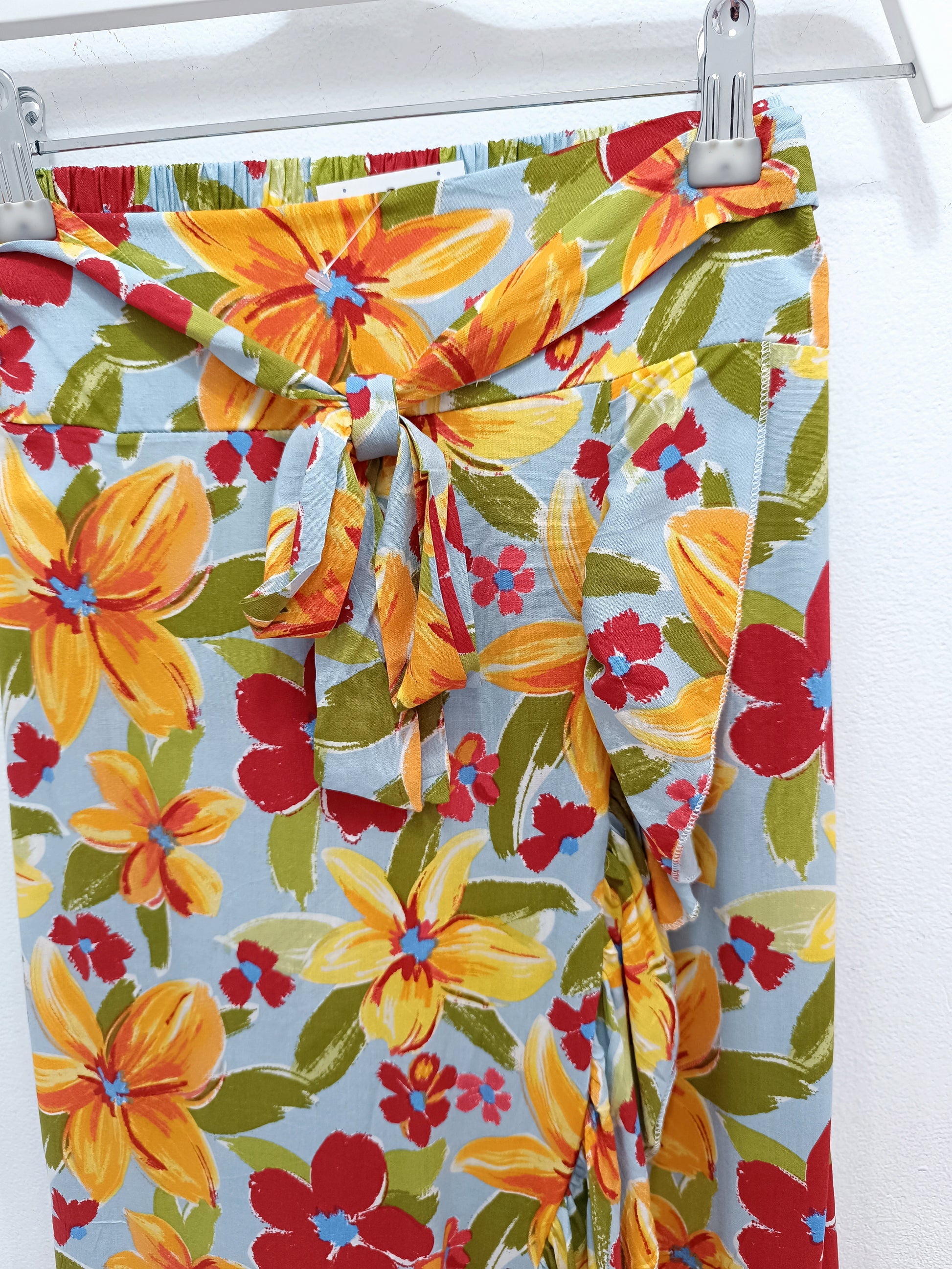 La falda Bombay es una prenda ideal para los días más cálidos, gracias a su estampado floral colorido que aporta un aire fresco y veraniego. Su corte pareo con largo asimétrico crea un diseño dinámico y elegante, mientras que la lazada a modo de cinturón permite ajustarla perfectamente a la cintura.