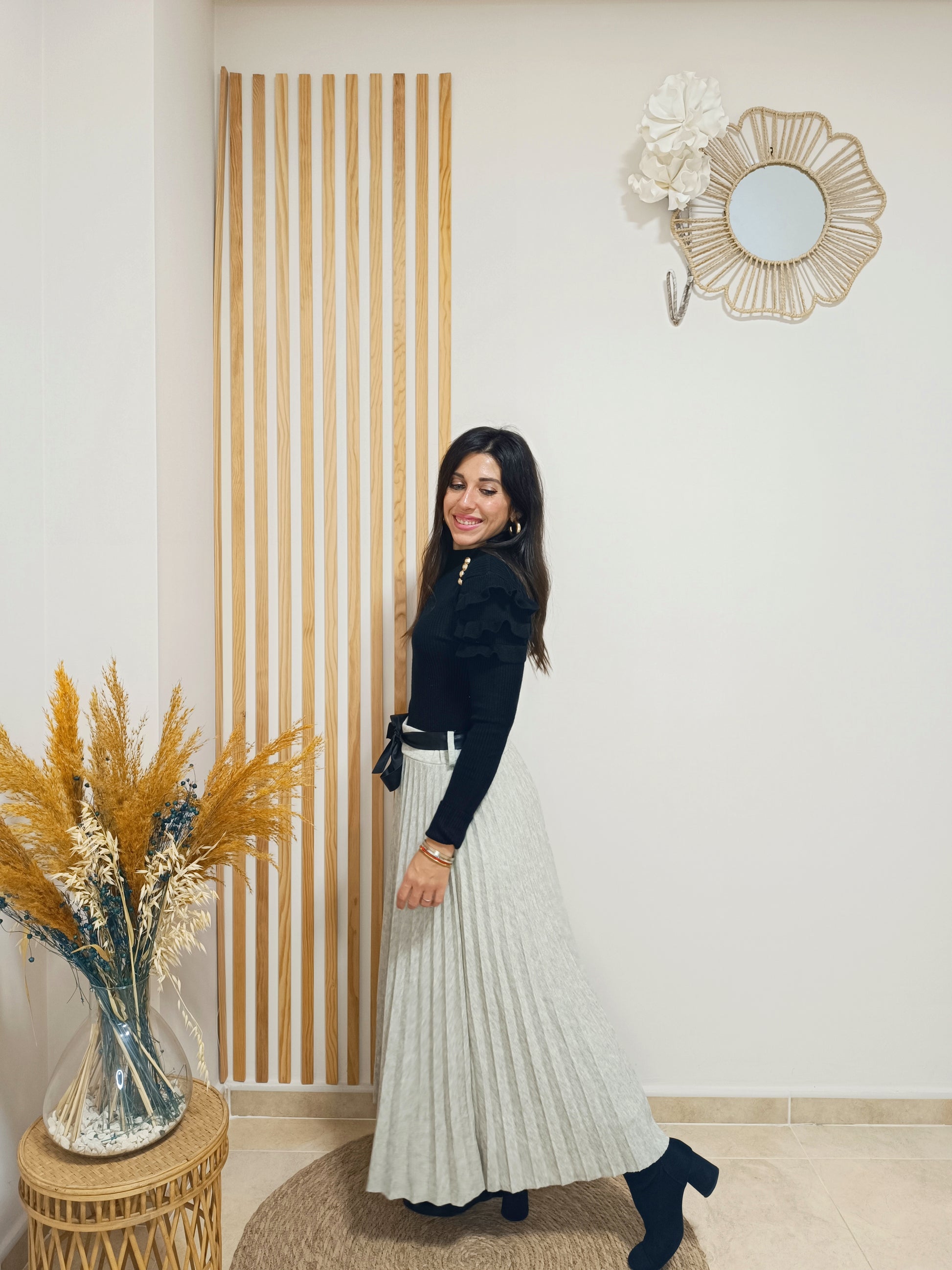 Falda de punto con largo midi y efecto plisado.
