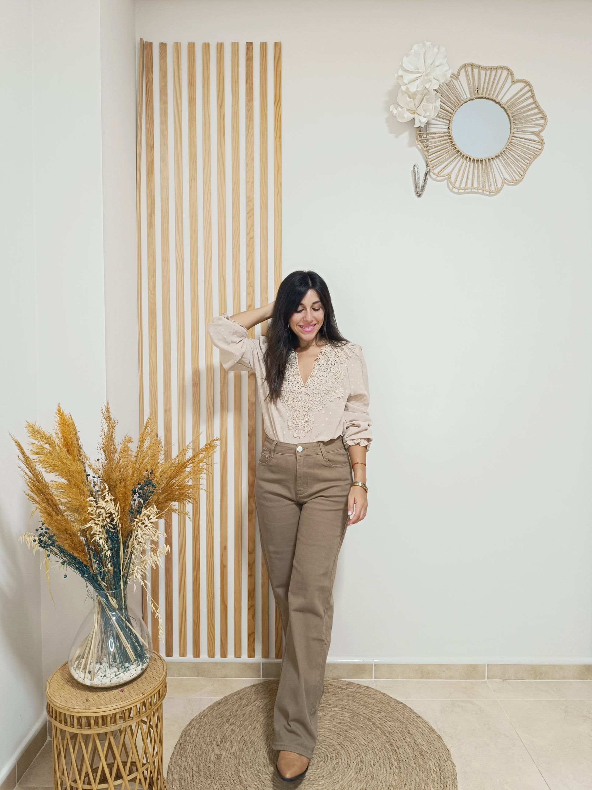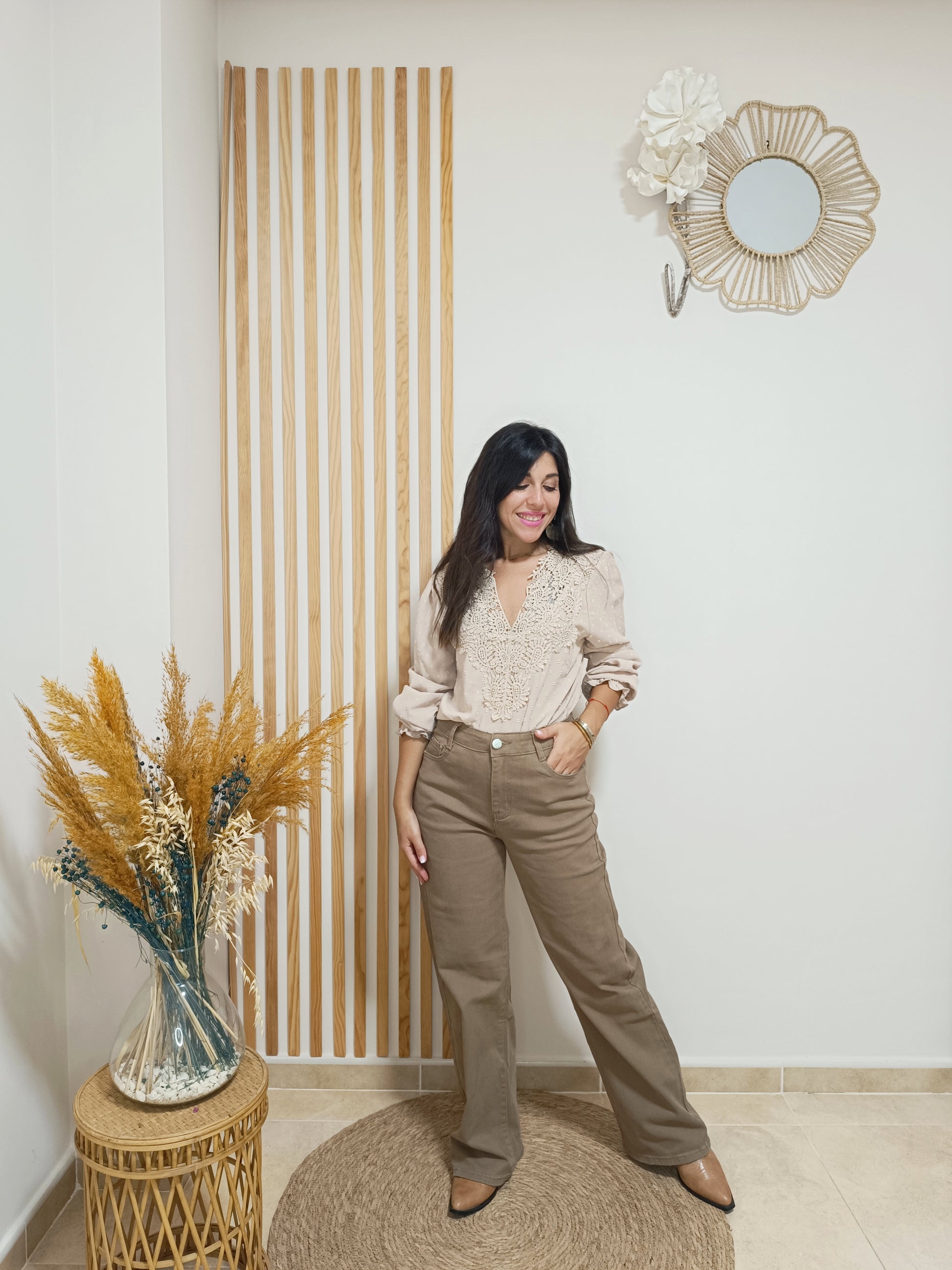 Nuestro vaquero Sáhara combina este color tendencia con un corte setentero que estilizará tu talle gracias a su cinturilla súper alta y su pata de acabado recto. Disponible en talla 38, 40, 42, 44, 46, 48.