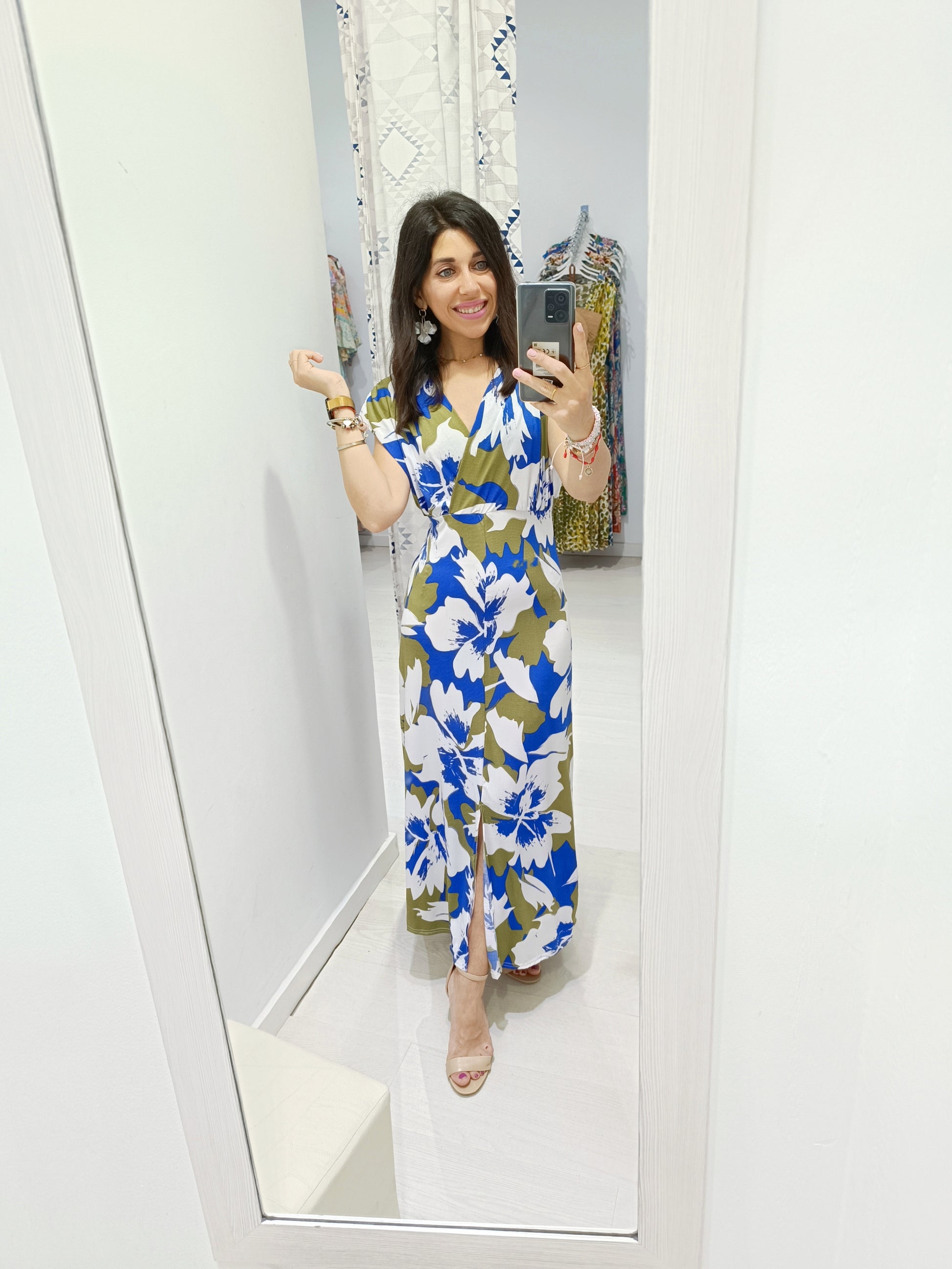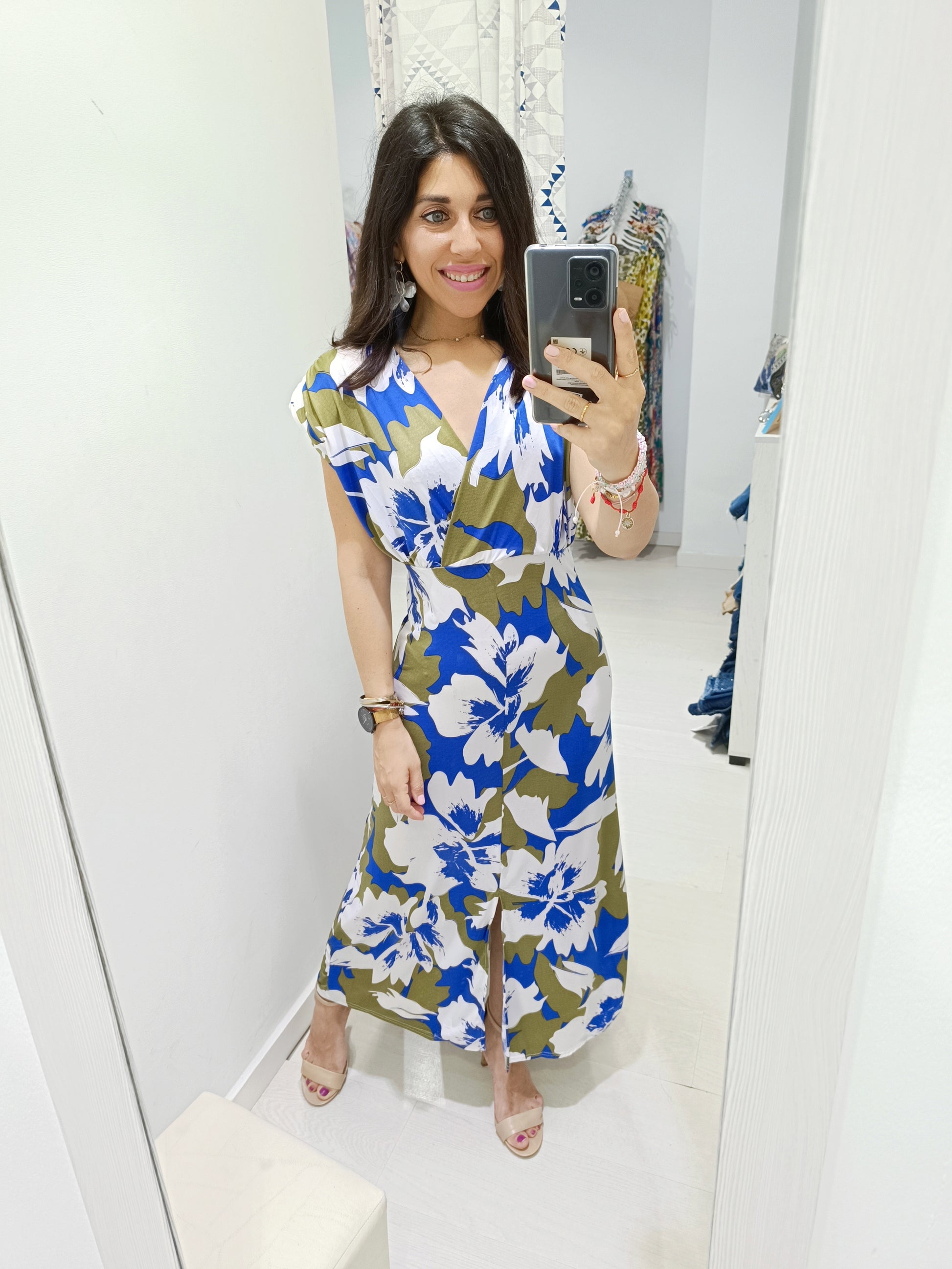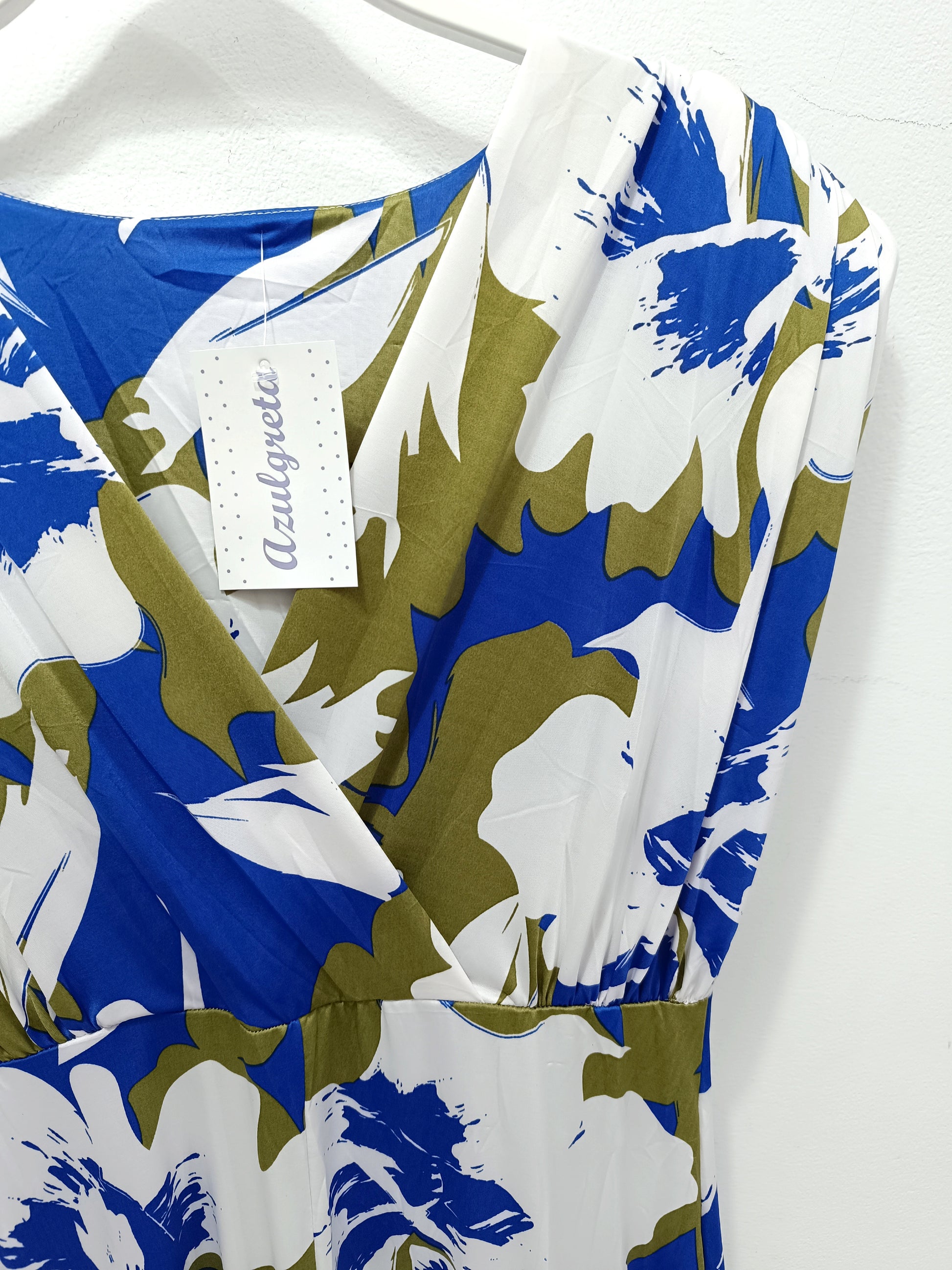 El vestido Marlene está confeccionado en lycra fría, un tejido súper elástico que se adapta perfectamente, realzando la silueta femenina y las curvas. Su estampado colorido con motivos florales aporta un aire fresco y vibrante, mientras que el detalle de hombreras y su diseño estructurado añaden un toque moderno y sofisticado.