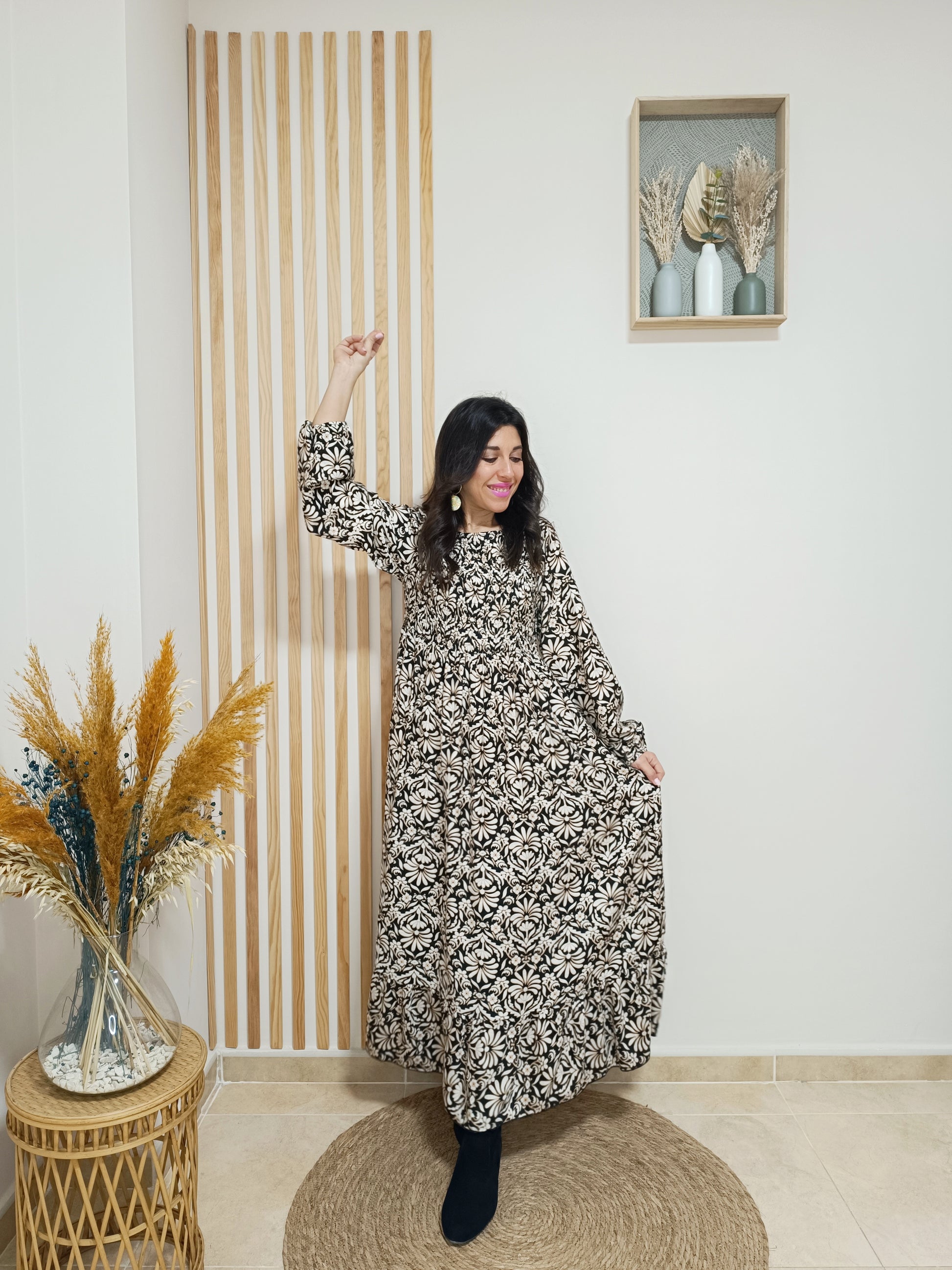 El vestido Tessa es una opción femenina y versátil, perfecta para cualquier día de la semana. De largo elegante, este vestido está disponible en color negro y en color azul marino, ambos combinados con un estampado en flor de Liss. Su diseño en nido de abeja, con toda la parte del pecho y la espalda engomada, se adapta cómodamente a la silueta. Las mangas, con puño elástico, permiten ajustarlas y remangarlas al gusto.