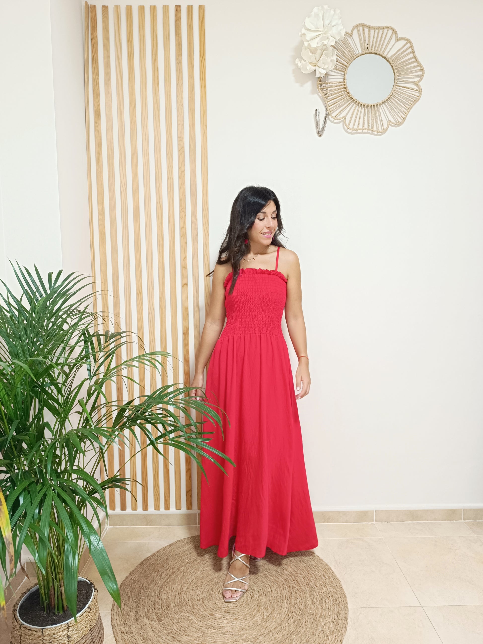 Este vestido lo tiene todo para ser la prenda estrella de tu armario. En color liso, de largo elegante y de lo más socorrido. Así se describe nuestro vestido Victoria. Se convertirá en uno de tus vestidos más cómodos de llevar gracias a su espalda y pecho engomados en nido de abeja junto con tirantes regulables para adaptarlo a tu cuerpo con más facilidad.